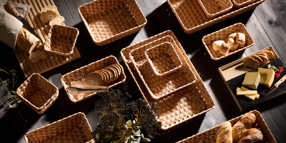 Robust, pflegeleicht und formstabil – die TWIRL-Körbe setzen elegante Akzente bei Buffet, Tisch oder Präsentation. Perfekt für Brot, Obst & Snacks.