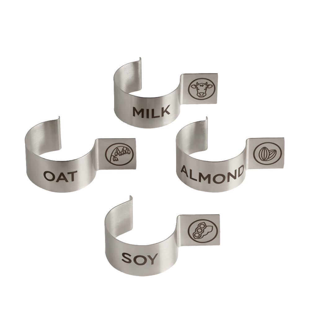Inox, vier verschiedene Beschriftungen (milk, oat,
