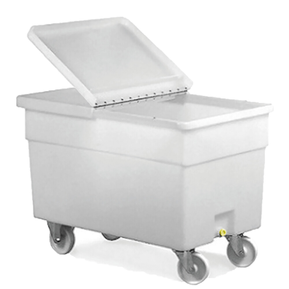 Der BACTAINER ist nahezu unverwüstlich, hat eine glatte, leicht zu reinigende Oberfläche, ist lebensmittelecht und dank der leichten V-Form ineinander stapelbar. Polyethylen, lebensmittelecht, abnehmbarer Deckel mit 1/2 Öffnung, mit integriertem Ablaufhahn (3/4 Zoll), stapelbar, 2Lenk- und 2 Bockrollen Ø100 mm (180 L) / Ø150