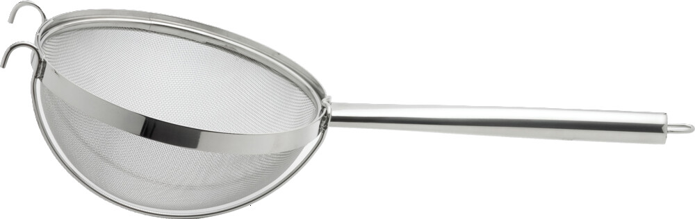 Inox 18/10, Gestell elektropoliert, Griff zur Hälfte ovalisiert, Gewebe mittel 1,5 mm, Einsätze leicht auswechselbar