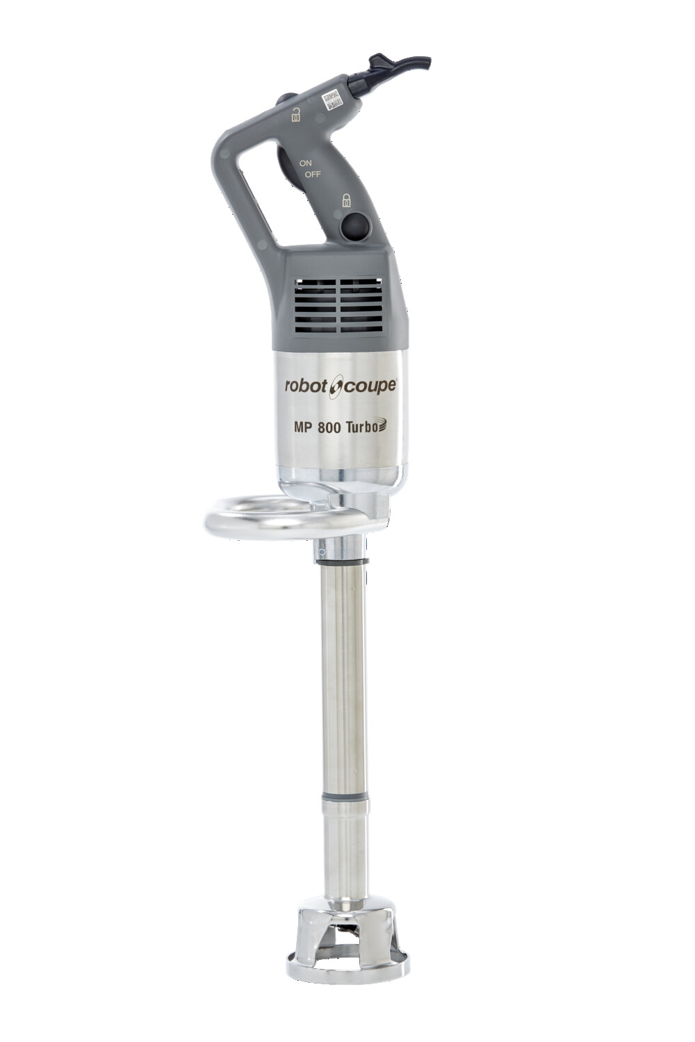 Stab, Mischkopf und Messer aus Edelstahl, integrierter Edelstahlgriff, besonders ideal bei Kippbratpfannen, vollständiges Auseinandernehmen des Stabs und Messers, Drehzahl 9500 U/min, inklusive Wandhalterung.