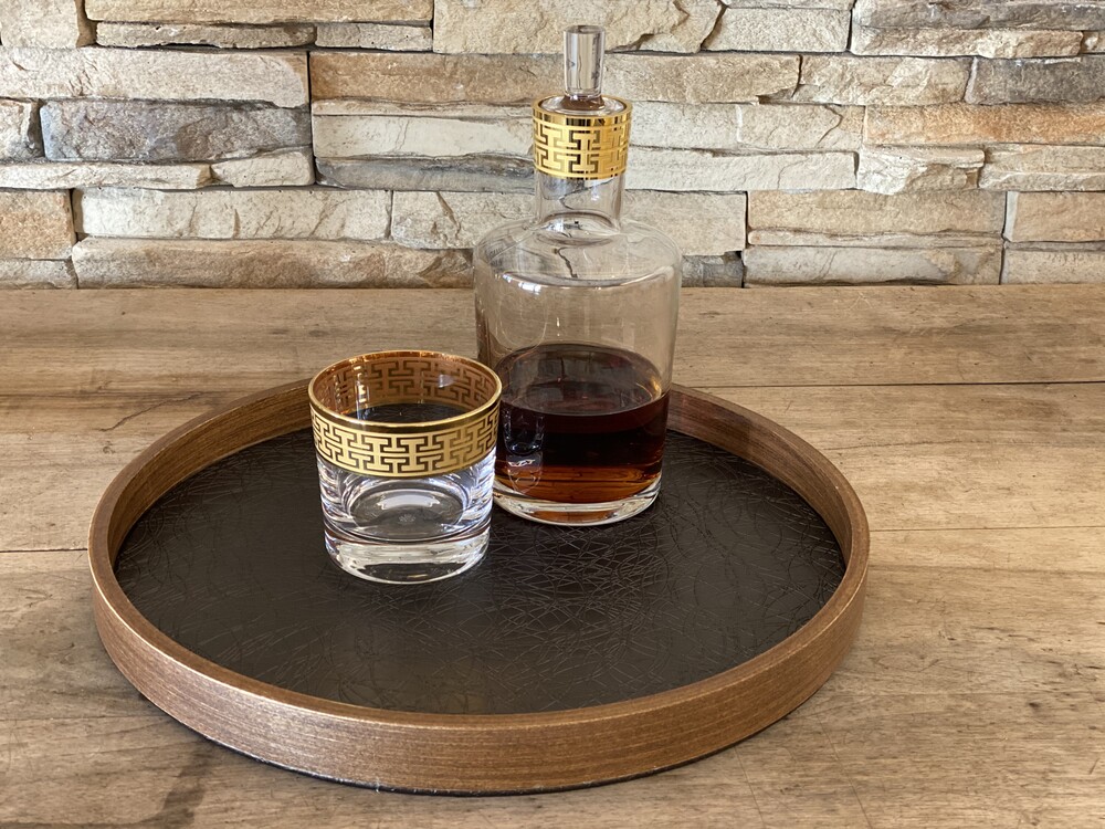 Tablett braun rund Rahmen Holz