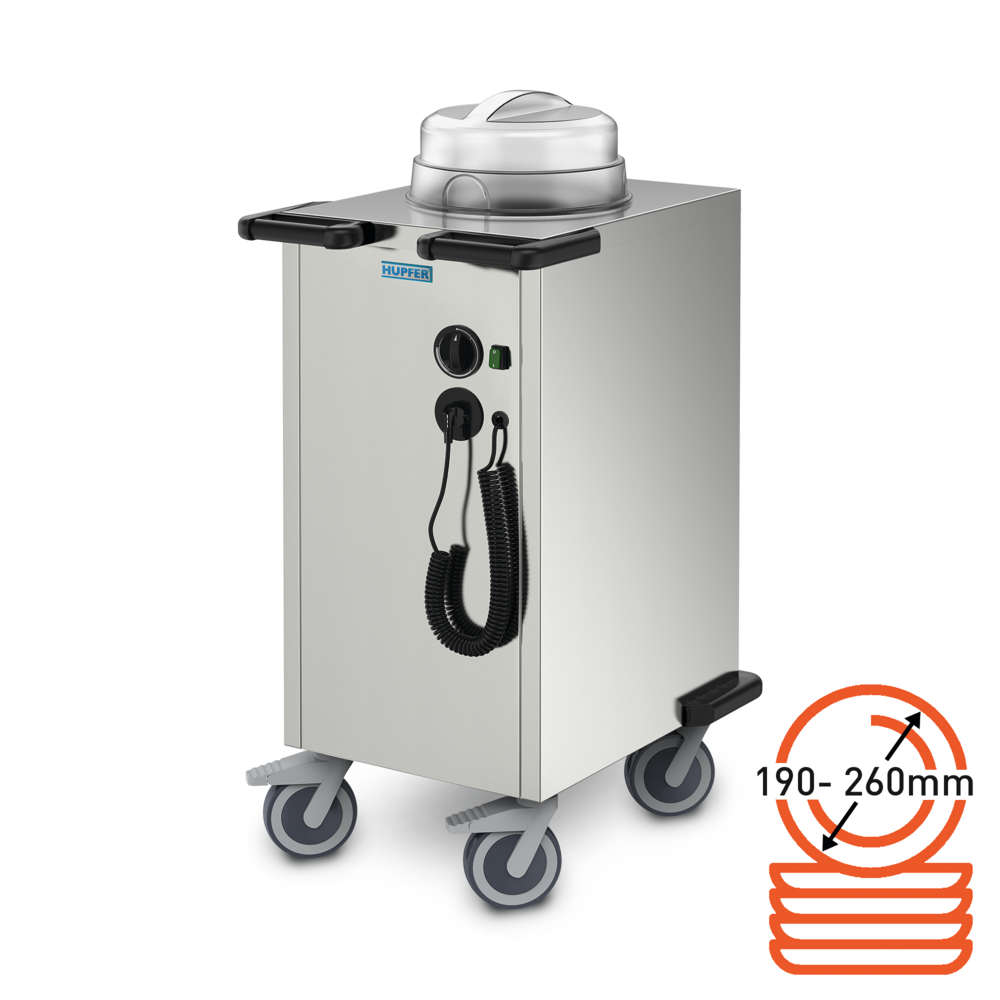 Aus Inox. Viele Details wie z.B. die einfache Einstellung auf alle gängigen Tellergrössen, die unkomplizierte Bedienung, die hohen Tellerstapel und die stufenlose Temperaturregelung (bei statisch- und umluftbeheizten Geräten) verdeutlichen den hohen Anwendernutzen.