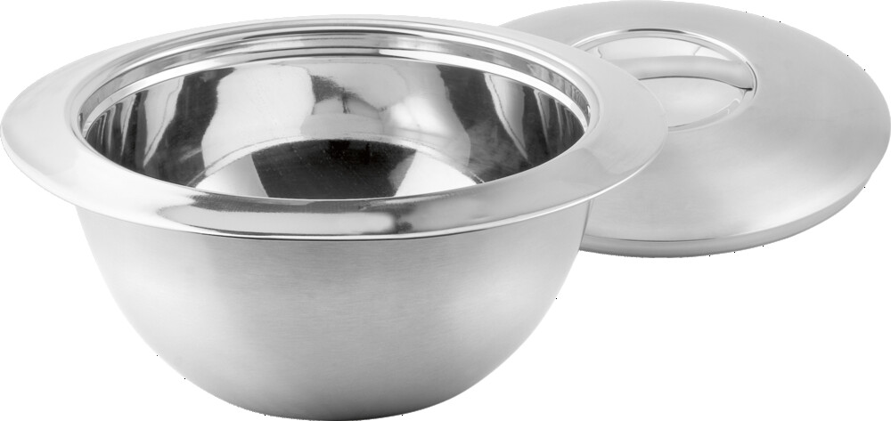 Inox, doppelwandig, Aussenseite satiniert, Innenseite hochglanzpoliert, mit Deckel, hält Inhalt bis zu 5 Stunden warm oder kalt