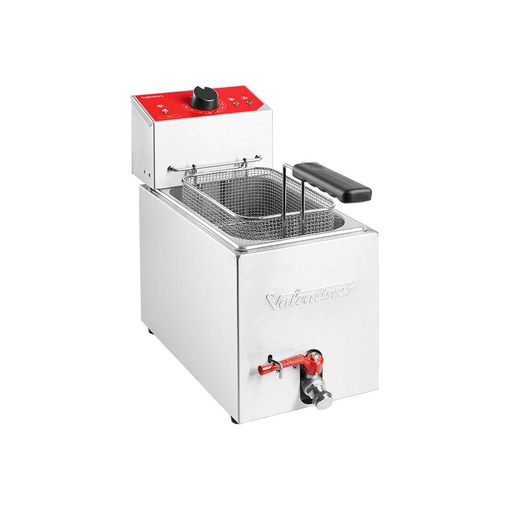 Komplett aus Edelstahl, gesicherter Öl-Ablasshahn mit schraubverschluss, das tiefgezogene und nahtlose Ölbecken mit abgerundeten Ecken erleichtert die Reinigung und verhindert Schmutzablagerungen, Friteuse aus drei Teilen für eine erleichterte Pflege und Reinigung; das Ölbecken und Gehäuse können in der Geschirrspülmaschine gereinigt werden.