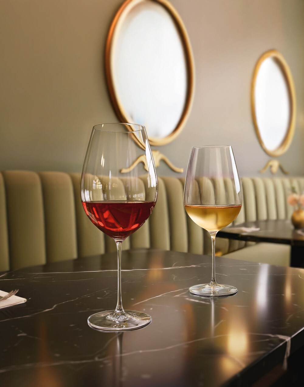 Die Weingläser bestechen durch ihre fliessenden Rundungen und elegante Silhouette. Sie vereinen kunstvolle Schönheit mit Funktionalität und machen jeden Schluck zu einem besonderen Erlebnis.