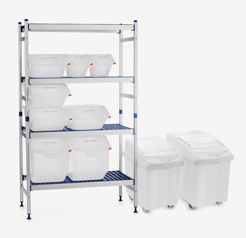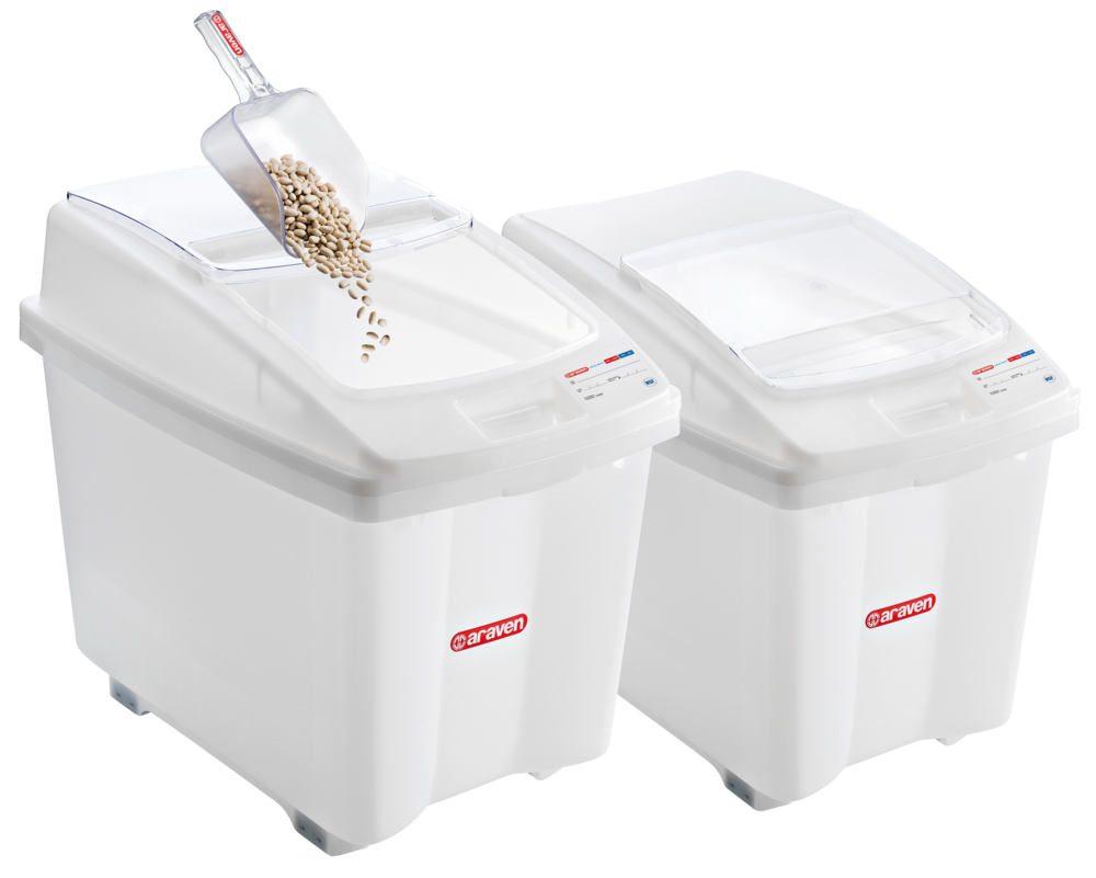 Zutatenbehälter zur Aufbewahrung trockener Lebensmitteln. Mit resistenten Polyamid-Rollen und transparentem Schiebedeckel.