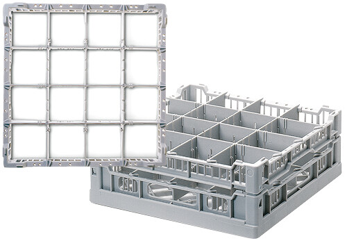 Casiers à verres pour verres en position verticale. Paniers de couleur grise, largeur d'insertion de 396mm, ils conviennent aux palettes. Egalement disponible sur demande avec une largeur d'insertion de 390 mm.