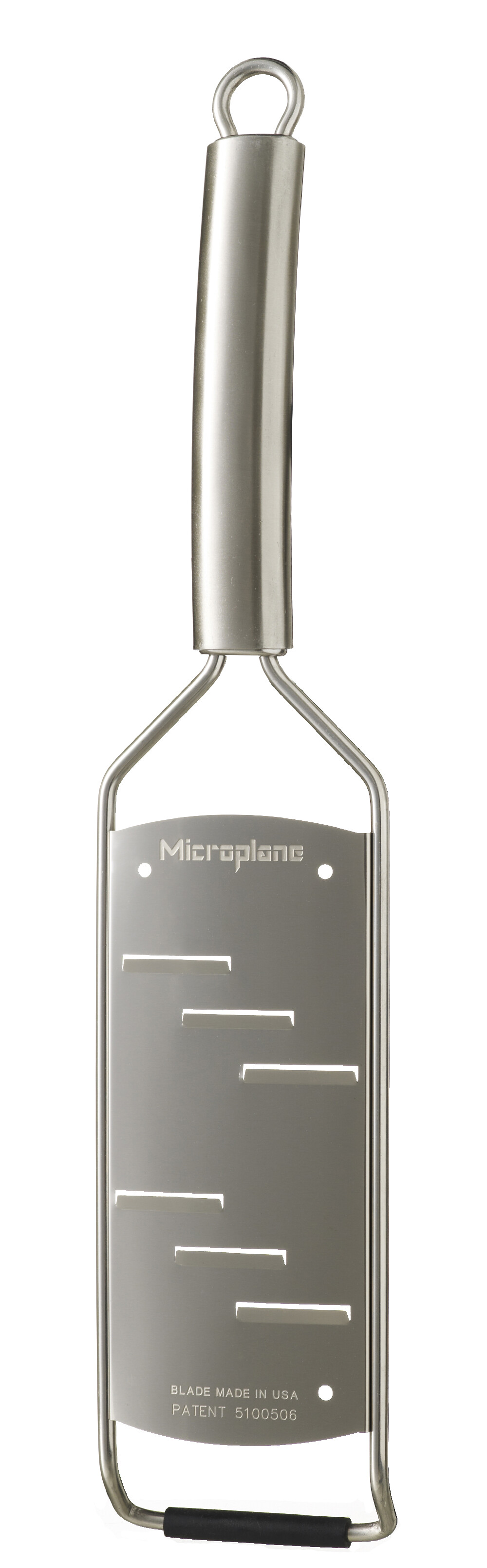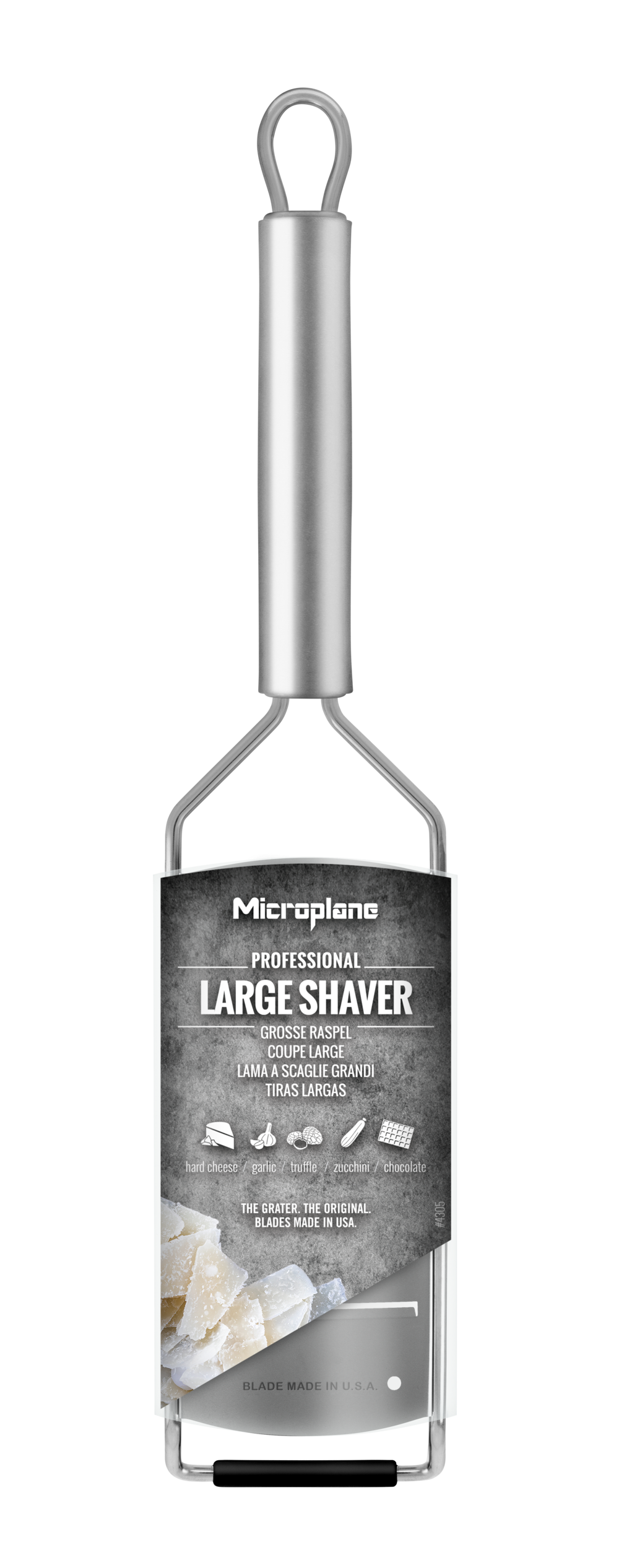 Avec la lame coupe large et ses six longues lames affûtées comme des lames de rasoir, râpez très facilement le chocolat, les carottes, le fromage, les truffes, le beurre, et bien plus encore, en lanières longues et larges.