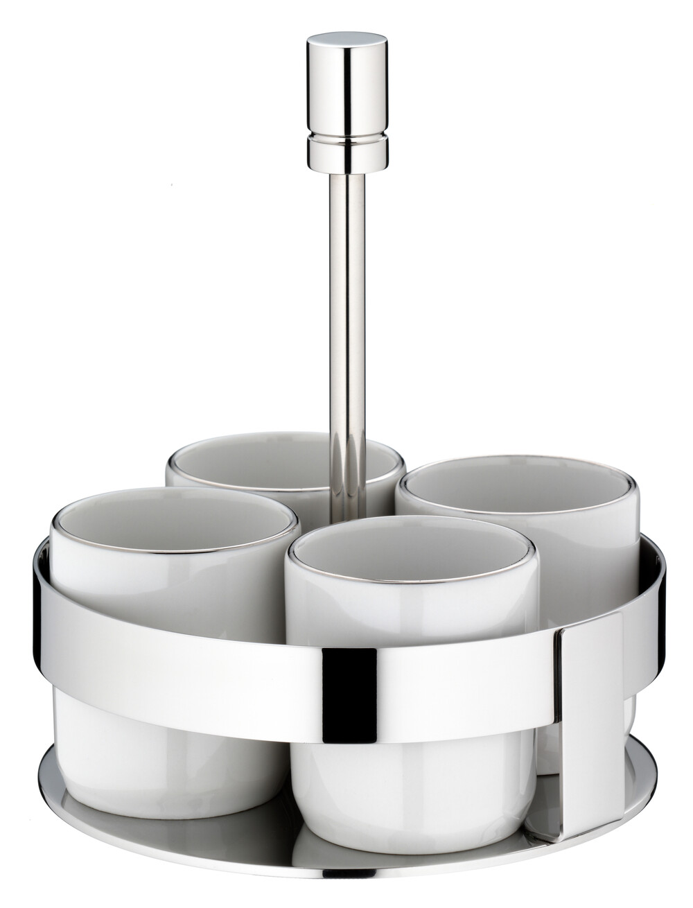 Des formes pures, sans fioritures ni ornements, caractérisent la collection PURE de WMF. Les ustensiles de service tels que les plateaux et les récipients se distinguent par leur style sobre, encore accentué par la finition en Cromargan® de haute qualité. Il en va de même pour les articles en porcelaine blanche de qualité WMF éprouvée. PURE s'adapte aussi bien aux buffets haut de gamme qu'aux buffets classiques de petit-déjeuner et complète l'offre par des aides au service aussi fonctionnelles que pratiques.